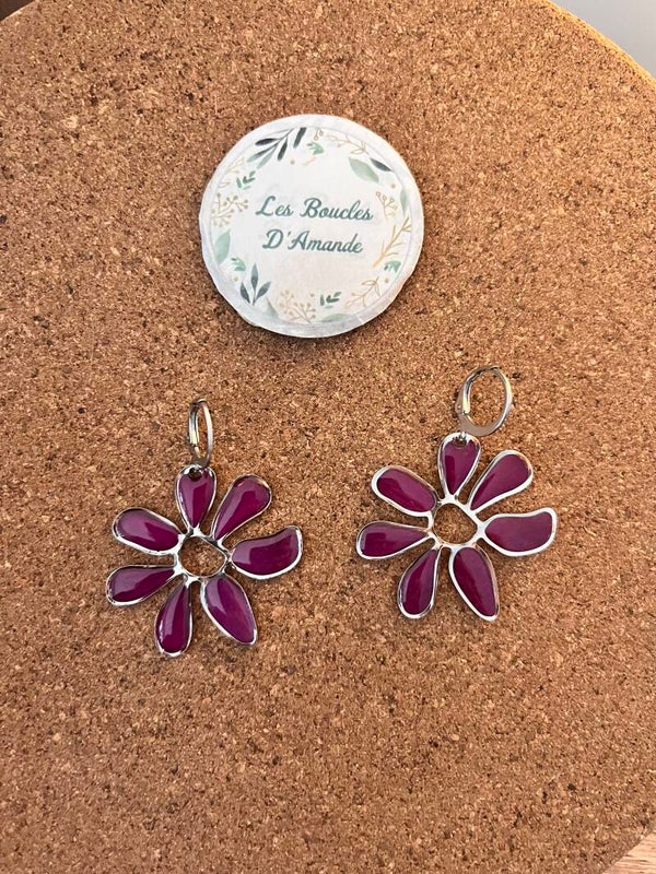 Boucles fleurs pivoine argentée